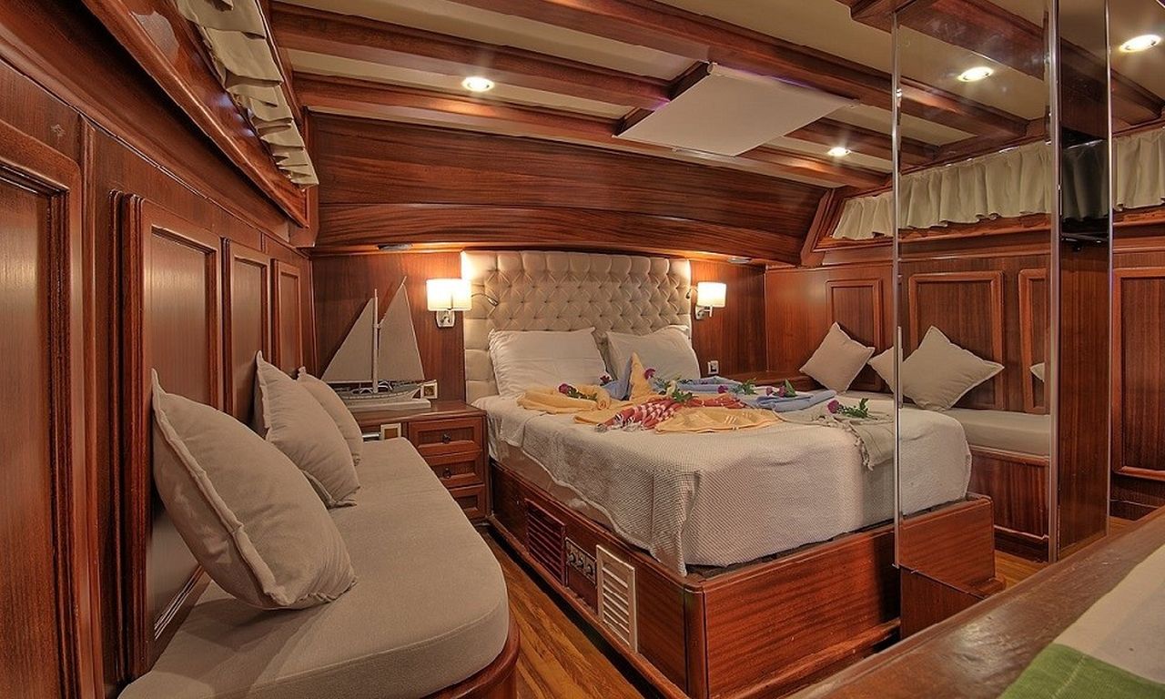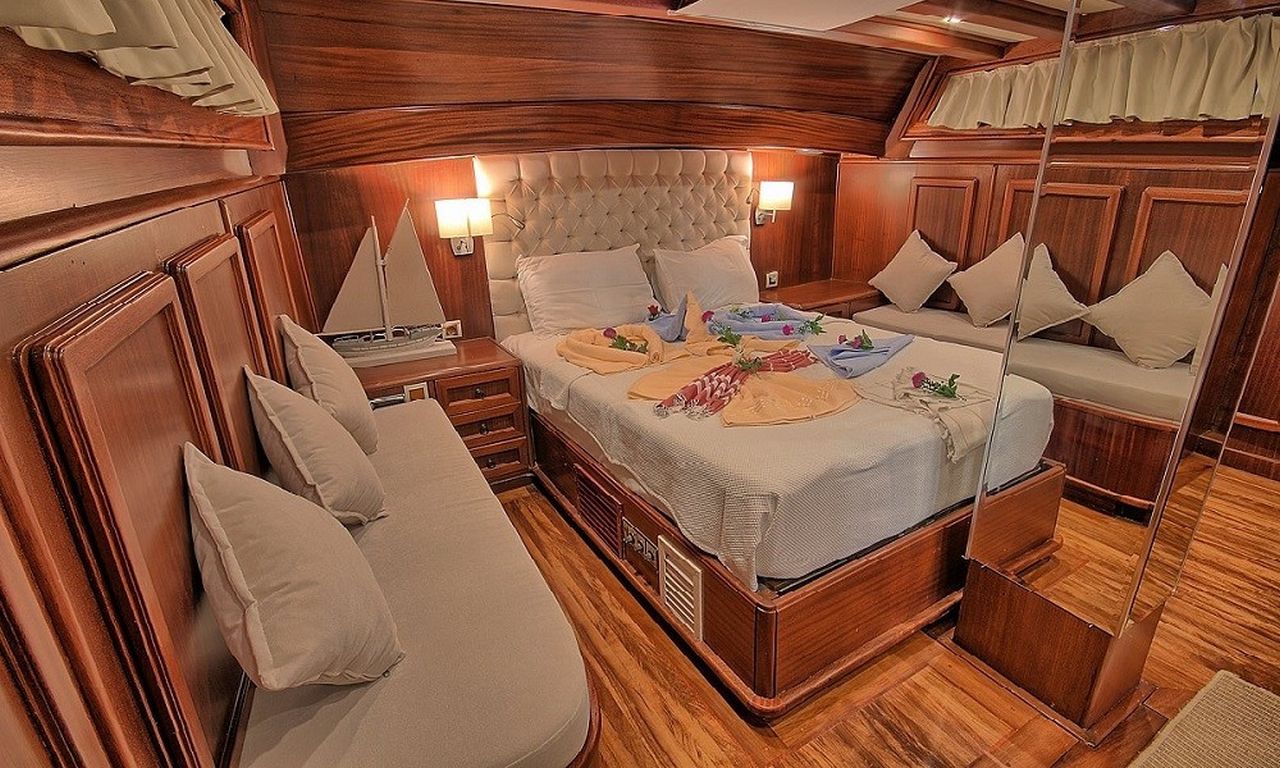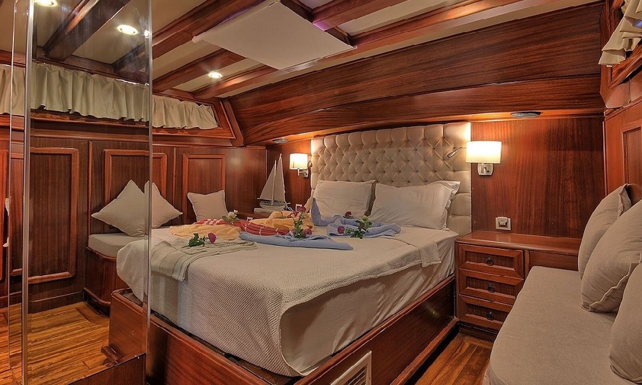 Gulet BLUE ROMANCE has 4 cabins, , 4 double for 8 guests. Custom Made 18 metre Gulet BLUE ROMANCE was built in 2008 and refited in 2021. She is available for yacht charters in Turkey with her crew members. Please send your inquiry today to check her availability and to receive our special offers!