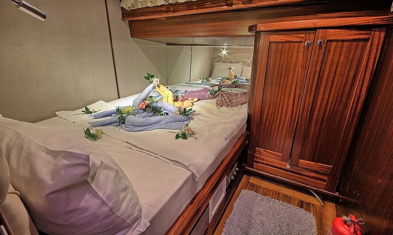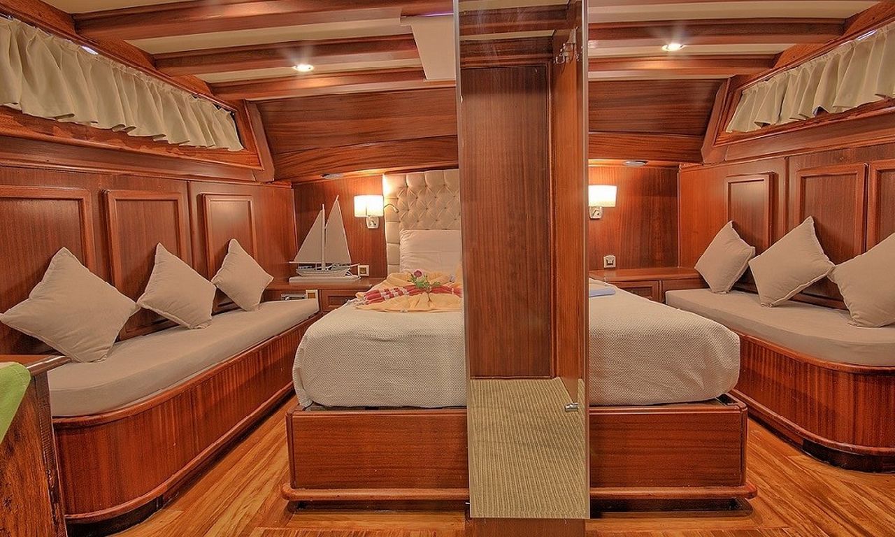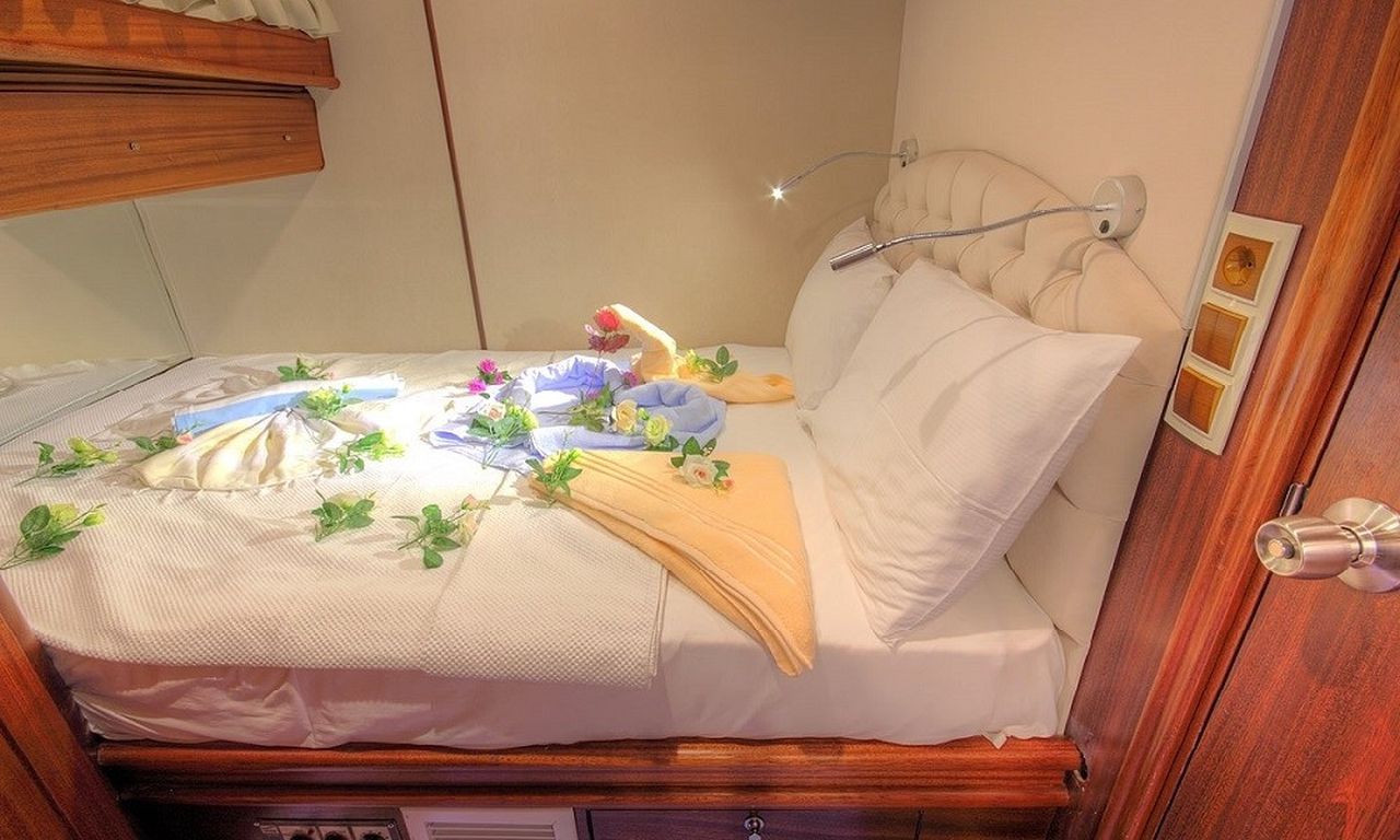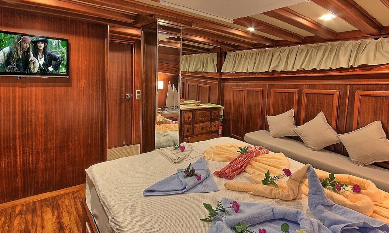 Gulet BLUE ROMANCE has 4 cabins, , 4 double for 8 guests. Custom Made 18 metre Gulet BLUE ROMANCE was built in 2008 and refited in 2021. She is available for yacht charters in Turkey with her crew members. Please send your inquiry today to check her availability and to receive our special offers!