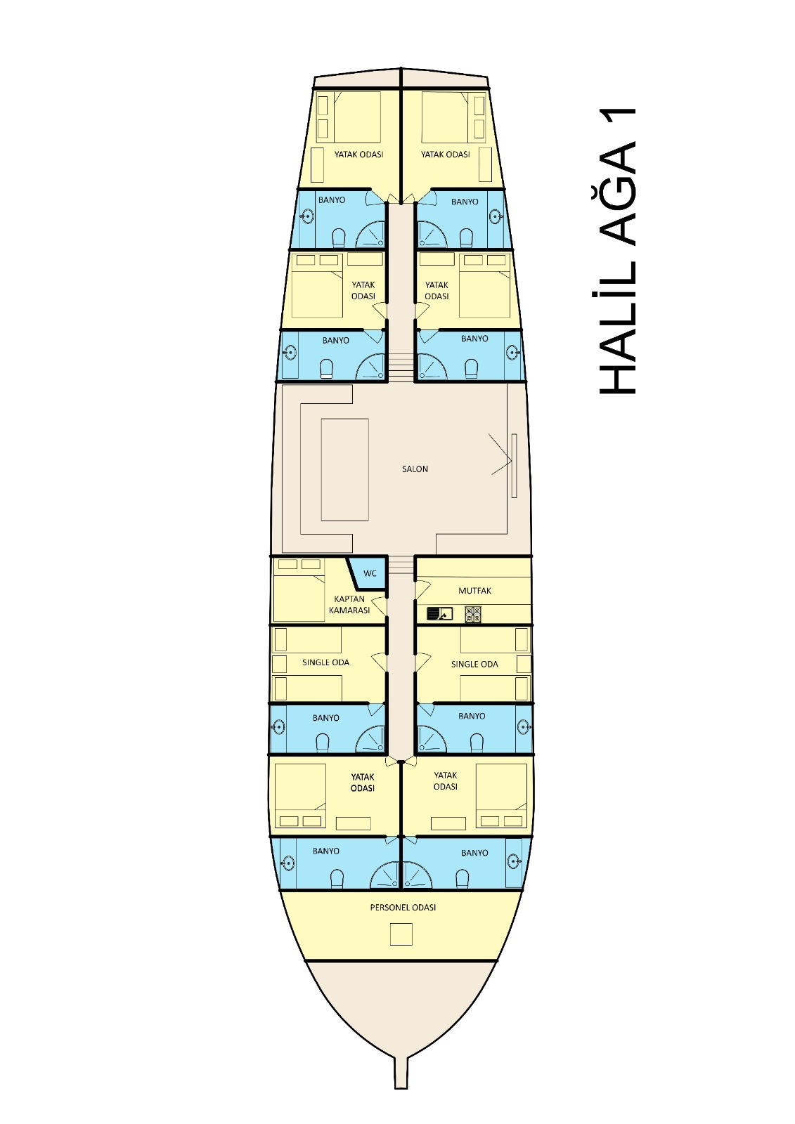 Gulet Halil Aga has 8 Cabins; 6 Double, 2 Twin.