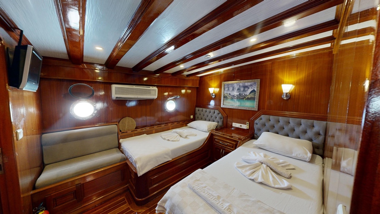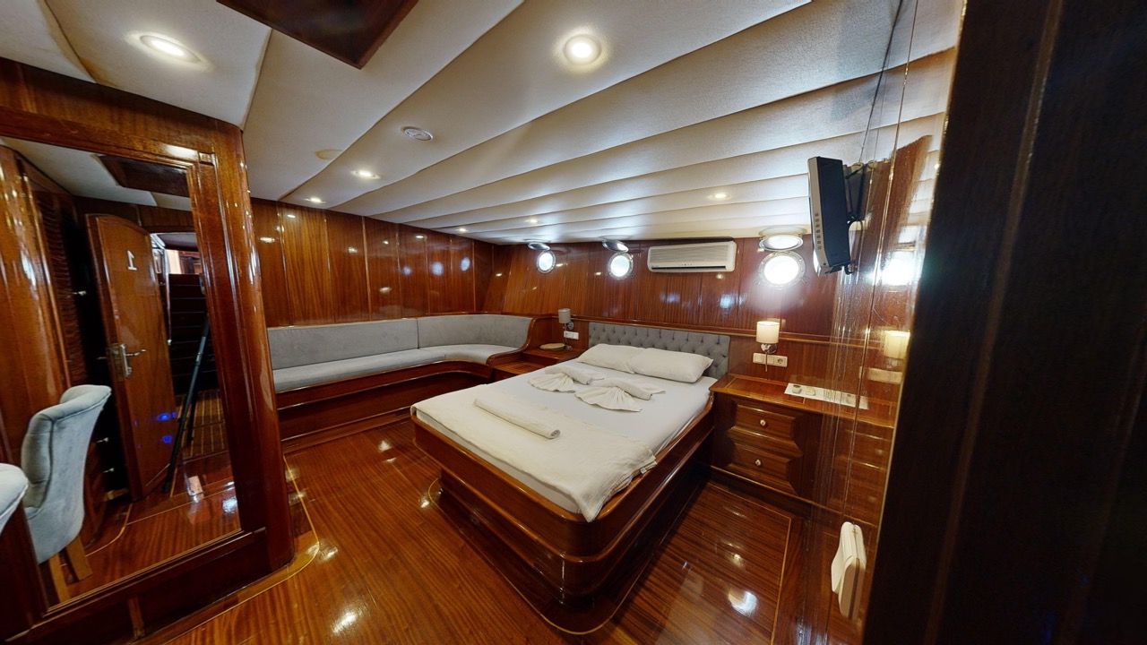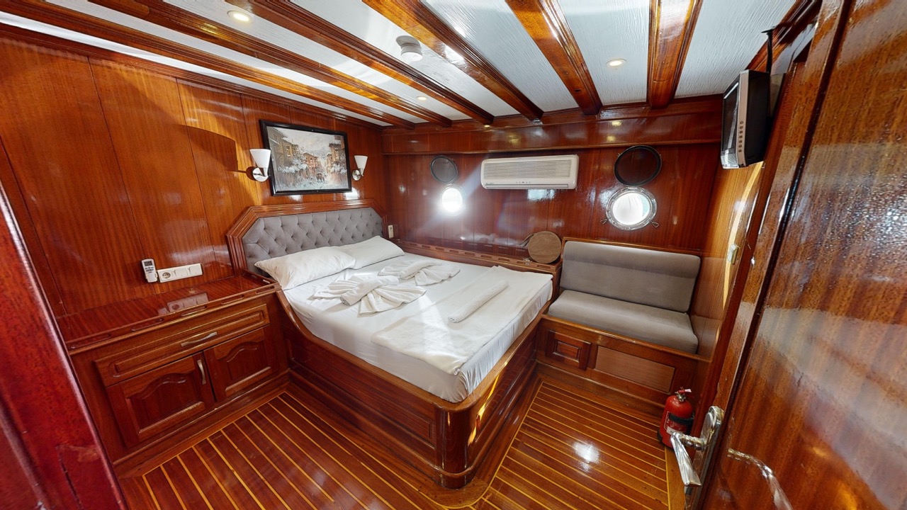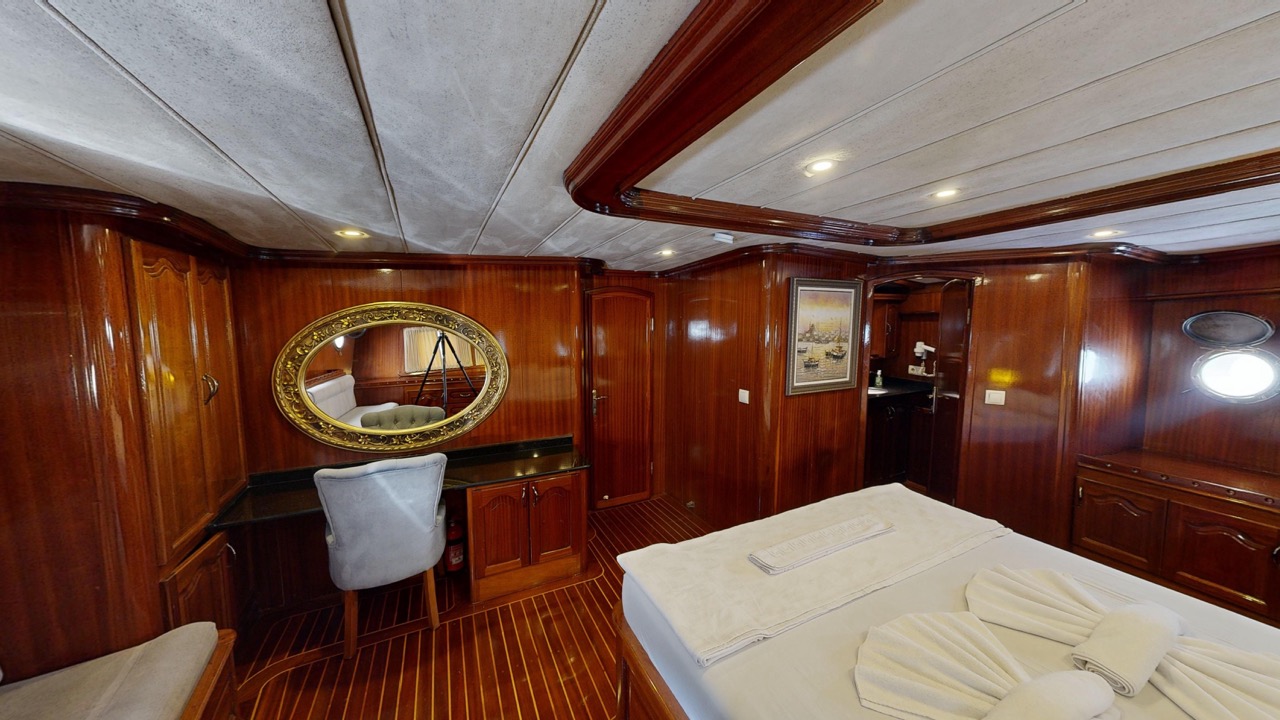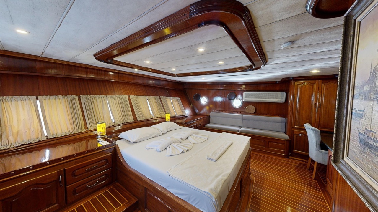 30 meters Gulet built in 2007 and refited in 2019 available for sale. She has 6 cabins for 12 guests. Can accommodate her guests at 2 master, 4 double cabins.